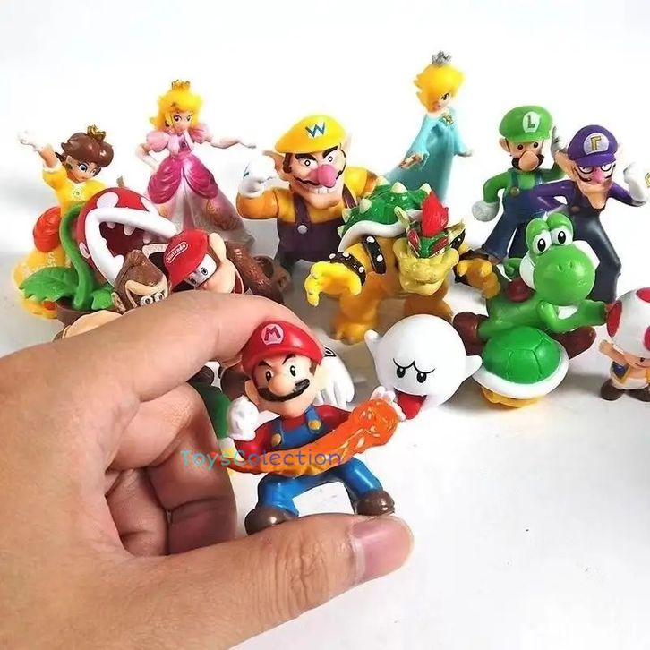 ACTION FIGURE SUPER MARIO BROS SET 12 / 18 PCS MAINAN TOPPER CAKE PAJANGAN MINIATUR