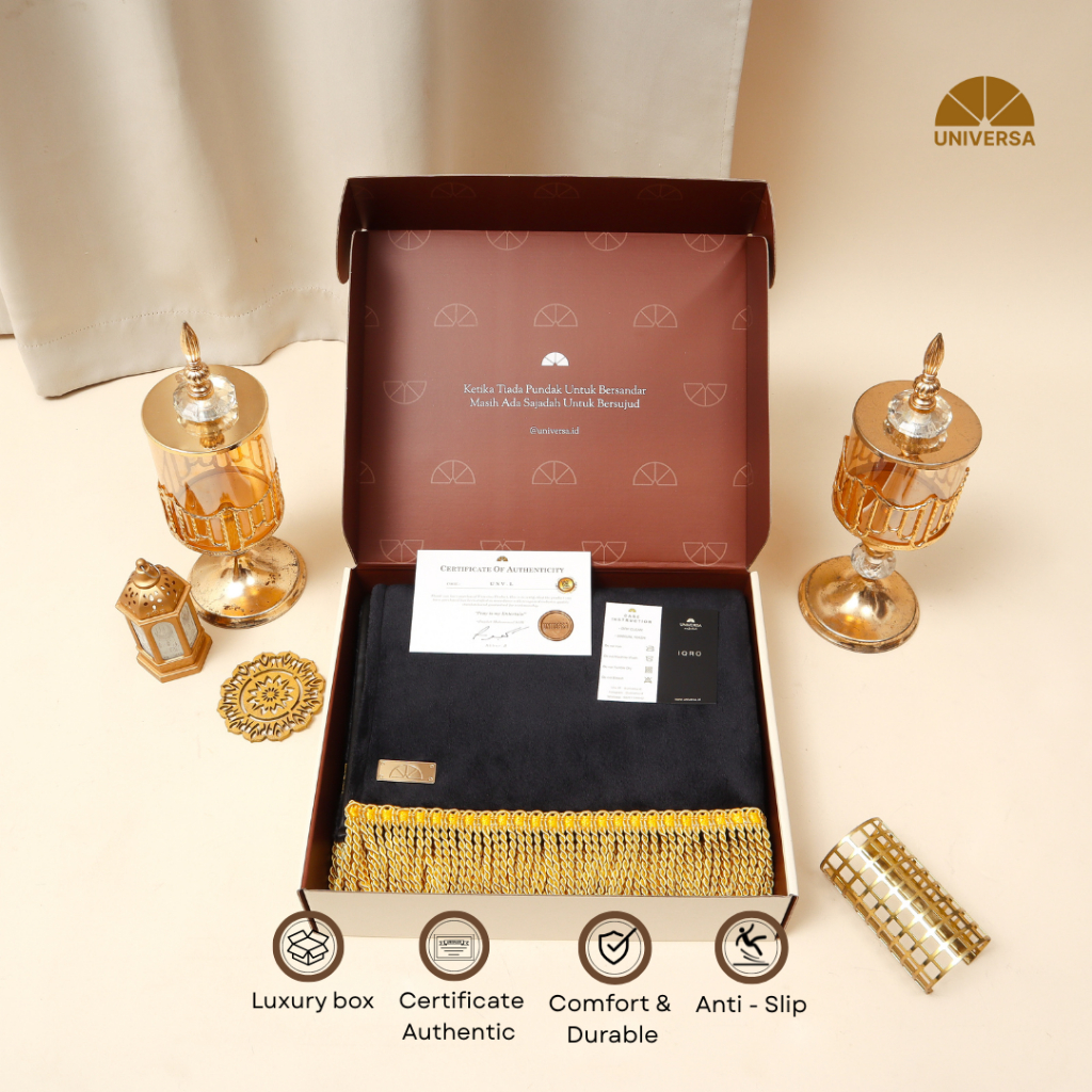 Universa Sajadah Dewasa HITAM (L) - Sajadah Black Polos, Sajadah Bulu Busa Kulit Rumbai