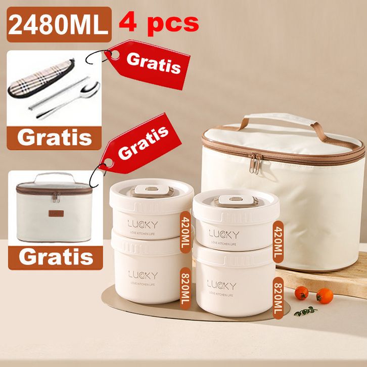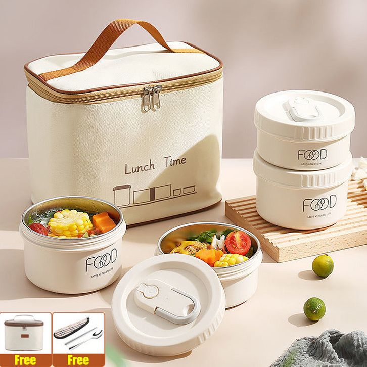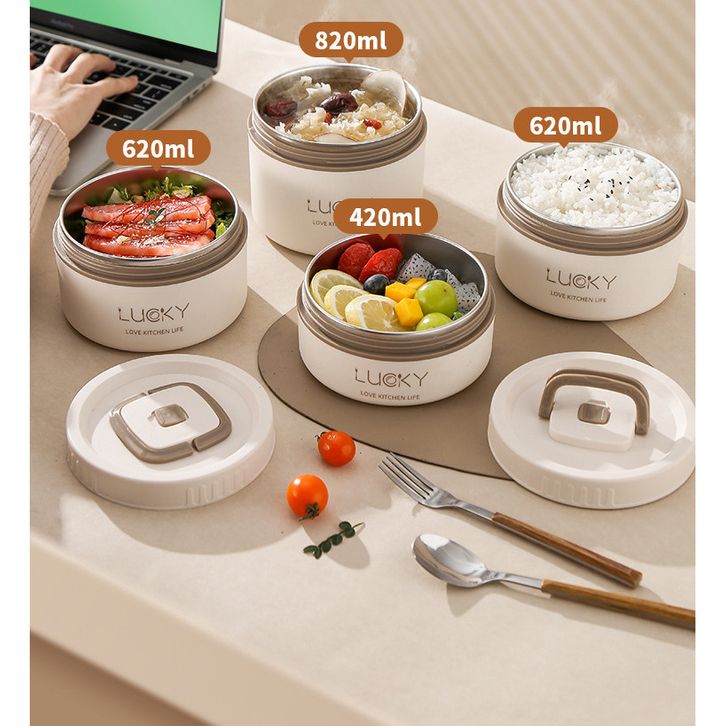 Bekal Makan Set Kotak Makan Lunch Box Siang Bento Portabel Tahan Bocor Gaya Jepang Round Stainless