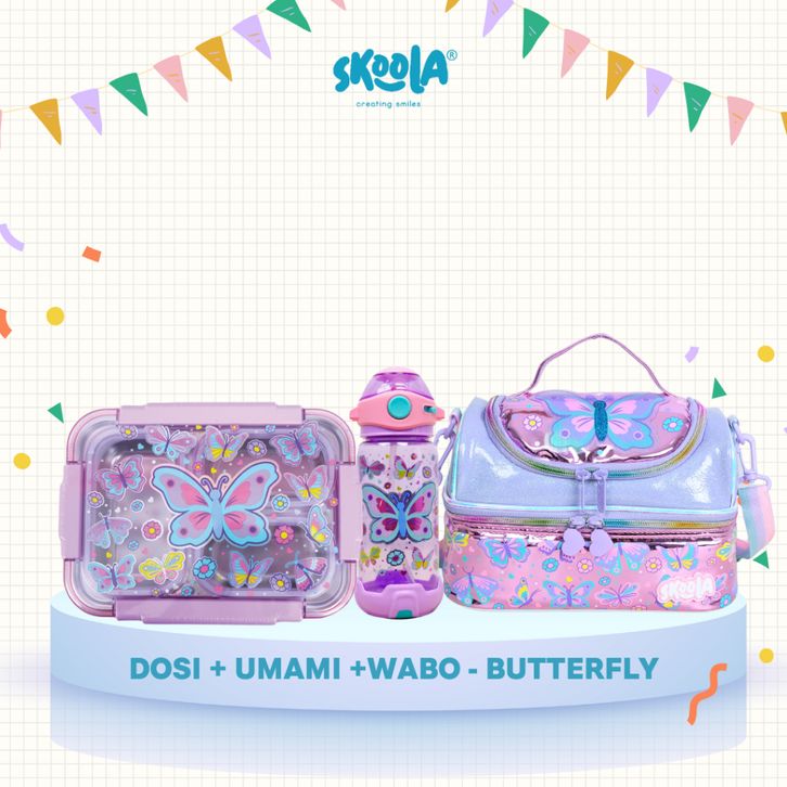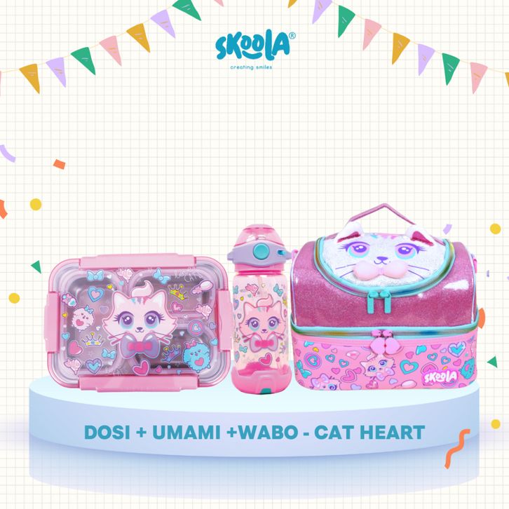Skoola Bundling Promo - Tas Bekal + Tempat Makan Anak + Botol Minum Anak - Dosi Umami Wabo St Bundle
