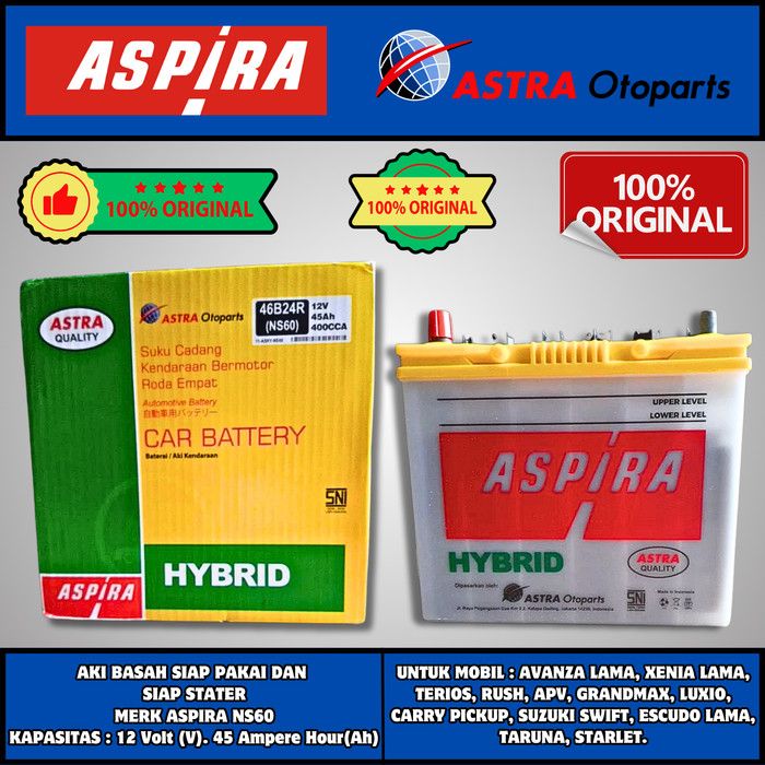 AKI MOBIL AVANZA , XENIA , LUXIO, GRANDMAX , T120SS PICK UP , LUXIO , CARRY PICK UP NS60 ASPIRA HYBRID ORI