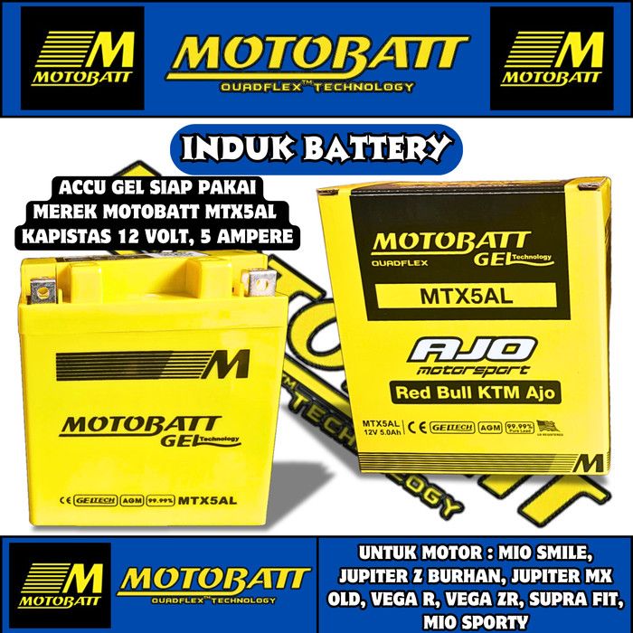AKI MOTOR YAMAHA MIO SPORTY MIO SMILE MOTOBATT MTX5AL AKI KERING / GEL