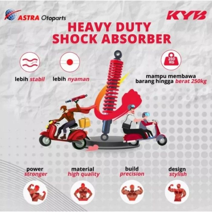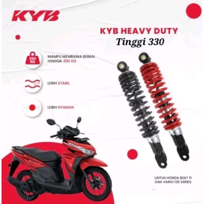 SHOCK VARIO 125 150 160 BEAT FI SCOPY FI KYB HEAVY DUTY 330 MM ORI - Merah