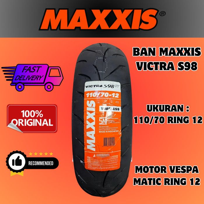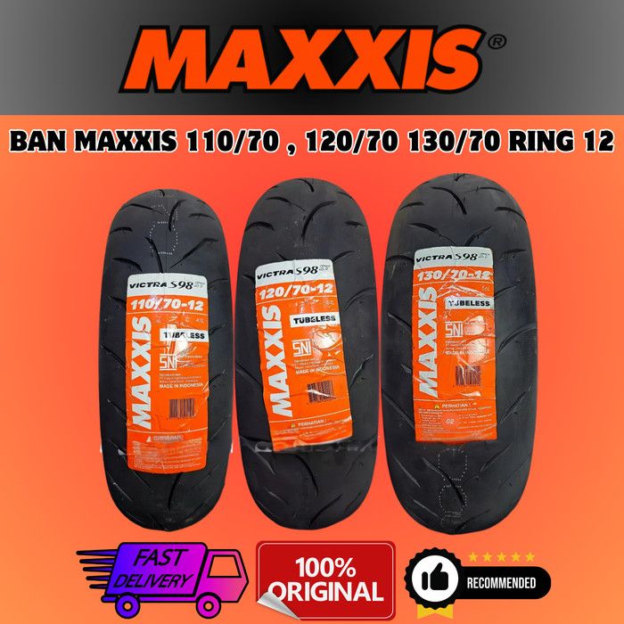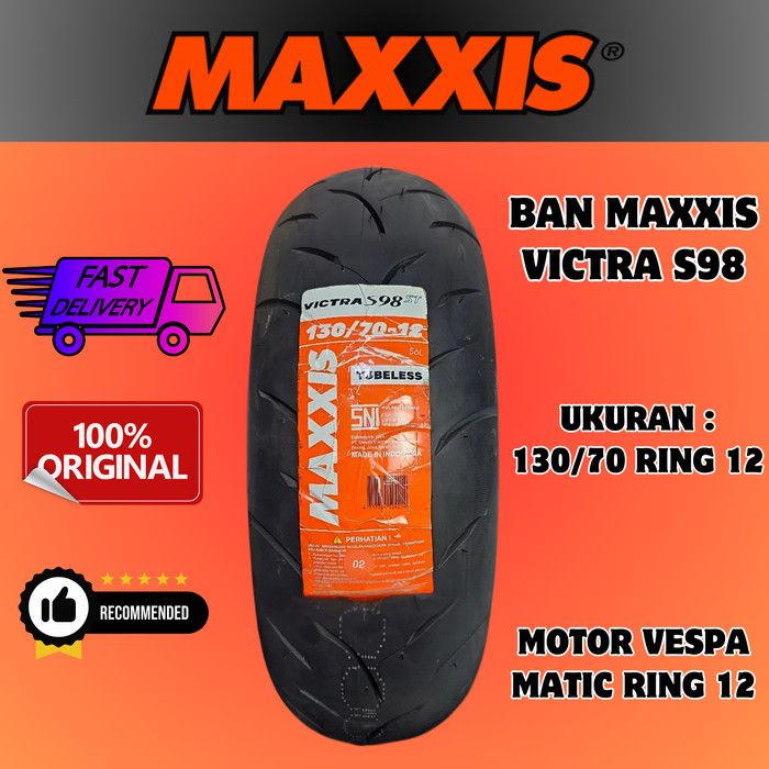 BAN DEPAN BELAKANG MOTOR VESPA MATIC RING 12 MAXXIS 110 70 12 , 120 70 12 , 130 70 12 ORI TUBELESS - 110/70-12