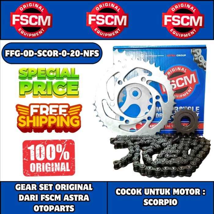 Gir Set , Gear Set Motor Yamaha Scorpio , Scorpio Z FSCM ORI 1 SET GIR DEPAN BELAKANG PLUS RANTAI