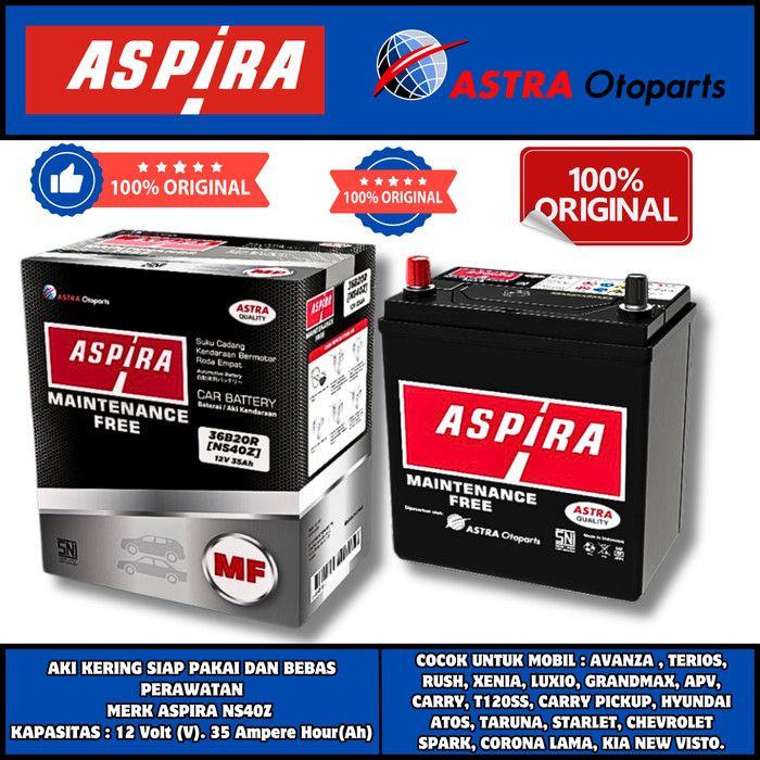 AKI MOBIL GRANDMAX, APV, CARRY PICK UP, LUXIO , RUSH , MAZDA 3 LAMA , T120SS PICK UP NS40Z ASPIRA MF ORIGINAL