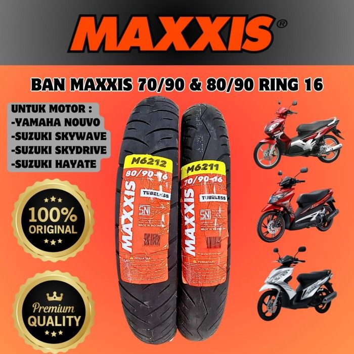 Paket Ban 1 Set Motor Nouvo Skydrive Skywave Hayate Maxxis ( 70/90 16 & 80/90 16 ) ORIGINAL Tubeless - 70/90 16