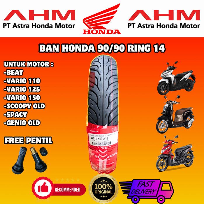 BAN AHM FEDERAL 80 90 14 , 9 /90 14 FT235 ORIGINAL HONDA Tubeless FREE PENTIL ( 44711-K59-A12 ) - 80/90-14