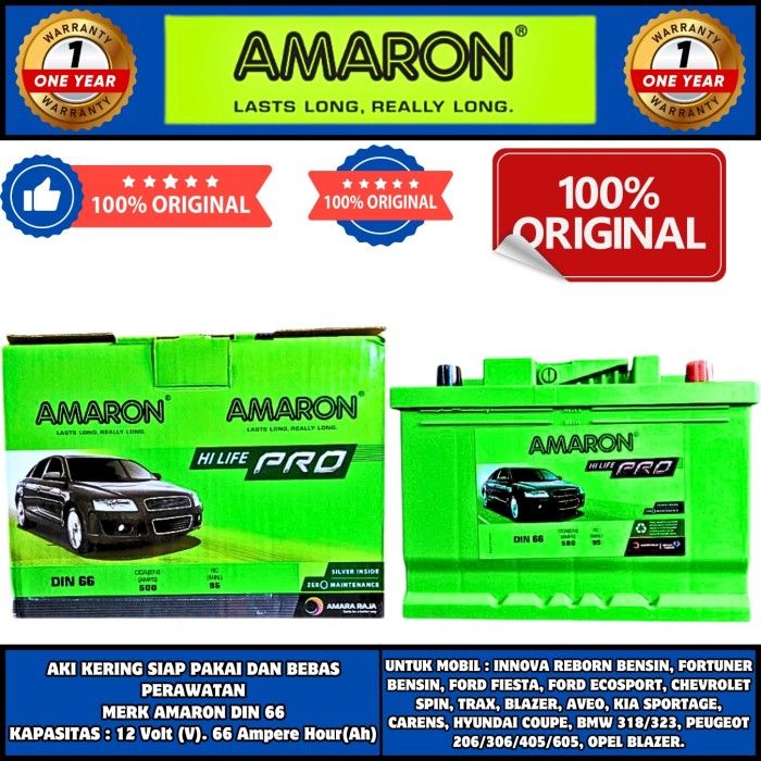 AKI MOBIL CHEVROLET SPIN , FORD FIESTA, FOCUS, VW GOLF Amaron Hi Life Din 66/555-59 ORIGINAL