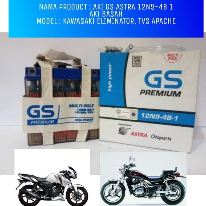 AKI MOTOR TVS APACHE KAWASAKI ELIMINATOR GS ASTRA 12N9-4B 1 AKI BASAH