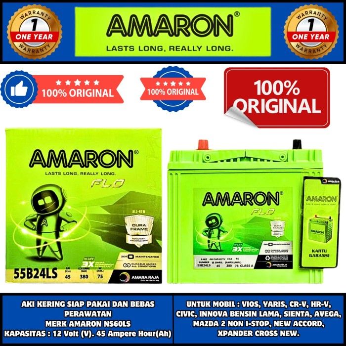 AKI MOBIL YARIS, VIOS, CRV, HRV, CIVIC, SIENTA , HRV , MAZDA NON I-STOP NS60LS AMARON HILIFE MF AKI KERING ORIGINAL