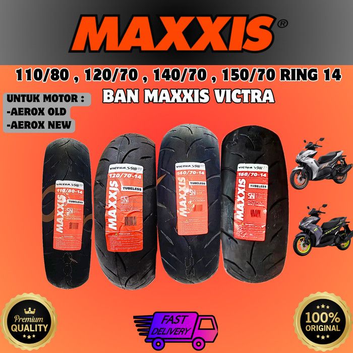 Paket Ban Motor Aerox 155 ( 110 80 , 120 70 , 140 70 , 150 70 RING 14 ) Maxxis Tubles Depan Belakang - 110/80-14