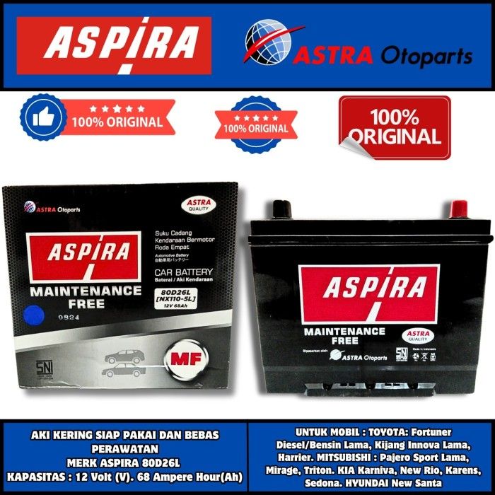 AKI MOBIL FORTUNER LAMA, PAJERO SPORT LAMA, INNOVA KIJANG LAMA 80D26L ASPIRA ASTRA MF AKI KERING