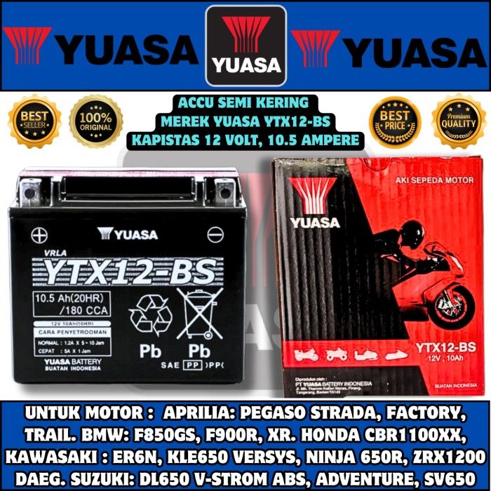 AKI MOTOR SUZUKI GSX 1300 HAYABUSA ( 2008 - 2014 ) VL 800 ( 2001 - 2004 ) YUASA YTX12-BS 0RI