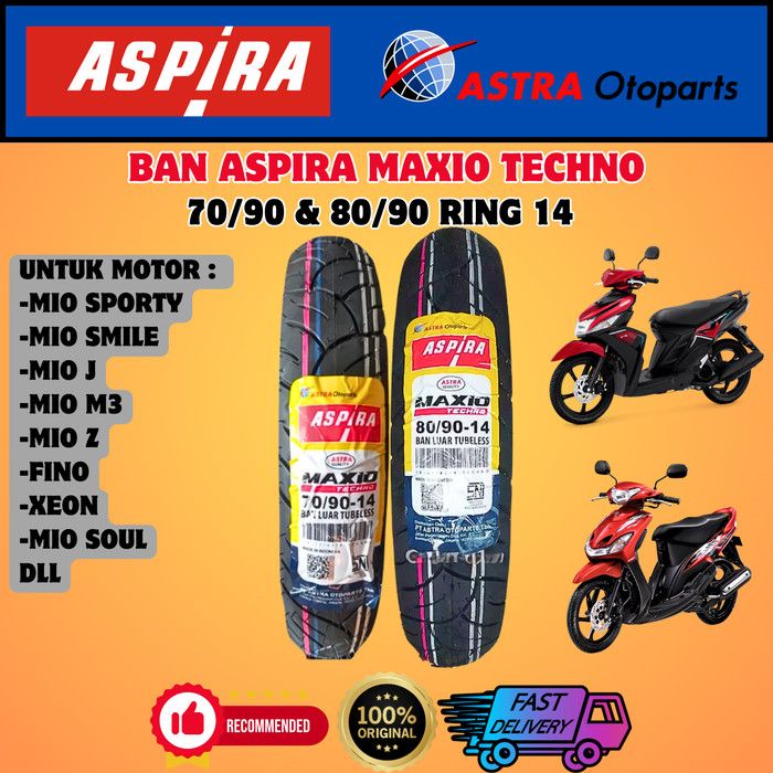 SEPASANG BAN MOTOR MIO FINO XEON SOUL GT MIO J MIO M3 ASPIRA TUBLES - 70/90-14