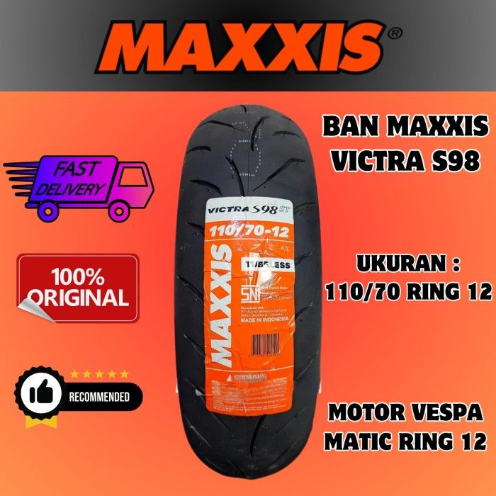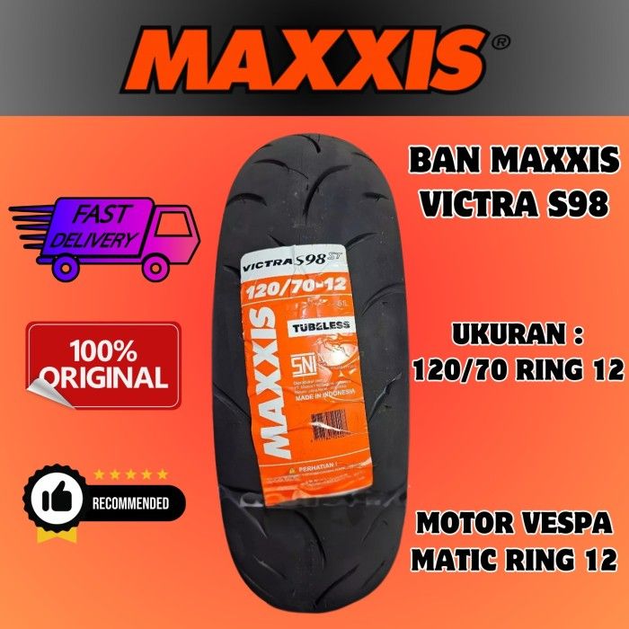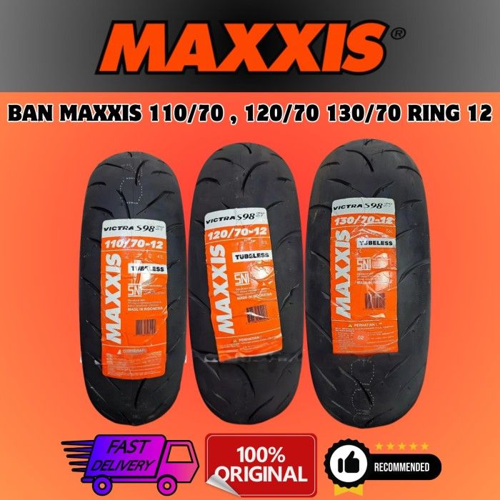 BAN MAXXIS 110 70 12 , 120 70 12 , 130 70 12 MOTOR VESPA MATIC RING 12 DEPAN BELAKANG ORI TUBELESS - 110/70 12