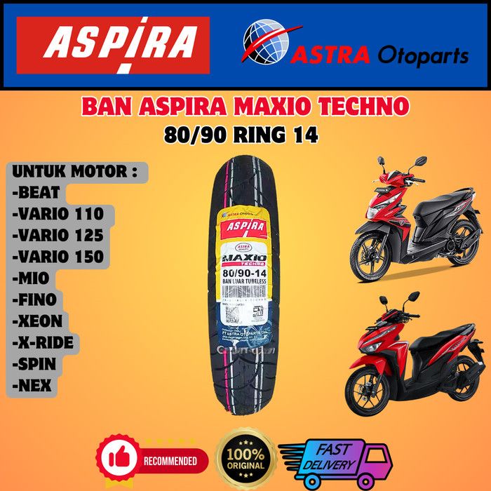 BAN MOTOR VARIO ALL TYPE 80/90-14F & 90/90-14R ASPIRA PREMIO TUBLESS - 80/90-14