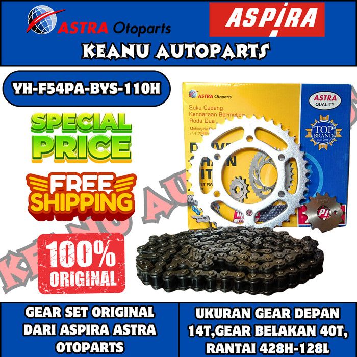 Gir Set , Gear Set Depan dan Belakang Plus Rantai Motor Yamaha Byson Aspira ORI 1 Set YH-F54PA-BYS-110H