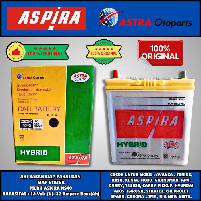 AKI MOBIL GRANDMAX, APV, CARRY PICK UP, LUXIO , RUSH , MAZDA 3 LAMA , T120SS PICK UP ASPIRA ASTRA HYBRID NS40 ORI