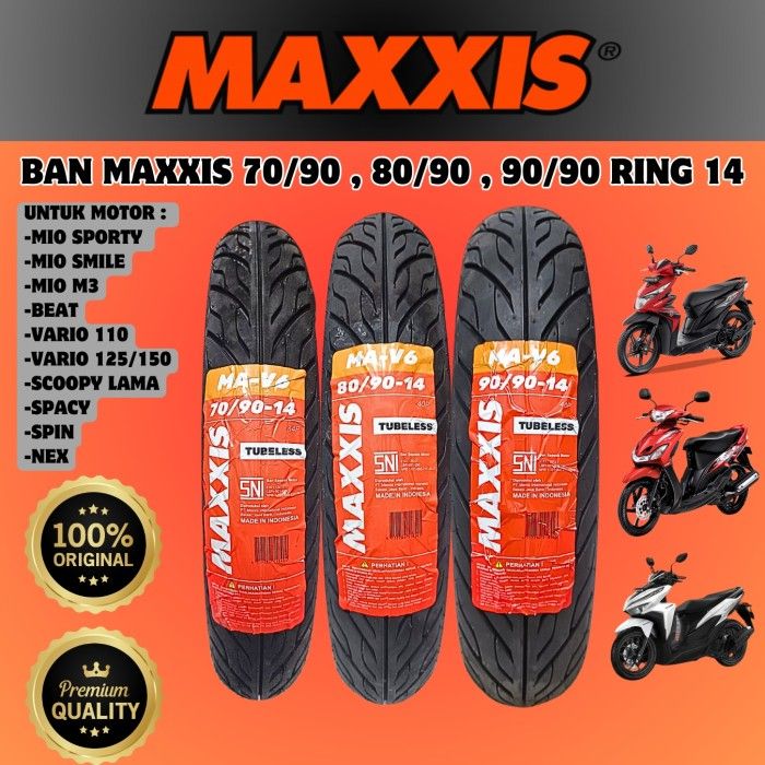 BAN MAXXIS ( 70/90 14 , 80/90 14 , 90/90 14 ) MOTOR MIO , XEON , BEAT , VARIO , SCOOPY TUBELESS ORI - 70/90&80/90 14