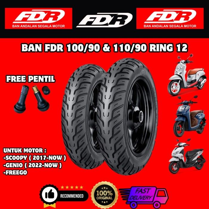 BAN 100 90 12 , 110/90 12 FDR CITY GO Tubeless ORI Motor Scoopy New Genio New Freego Free Pentil - Sepasang