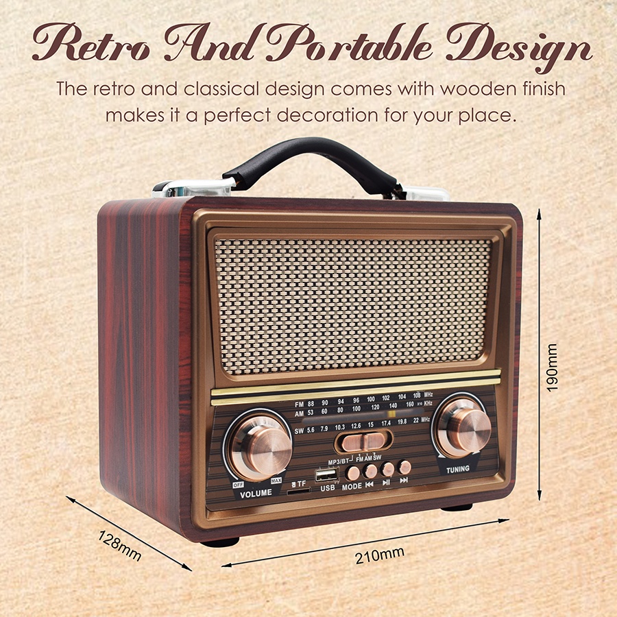 BISA CICIL Radio FM/AM/SW Speaker Portable Bluetooth FM Radio Wood Design Radio Bluetooth FM/kartu TF/usb RD-2055BT-BK