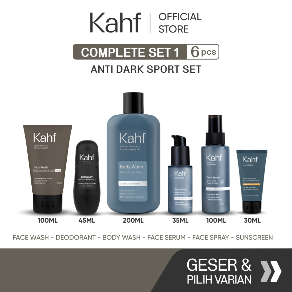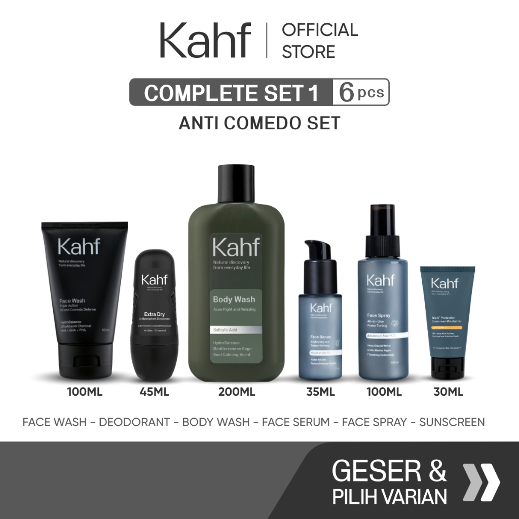 Kahf Paket Complete Set 1 (Face Wash + Toner + Serum + Sunscreen Moisturizer + Body Wash + Deodorant)