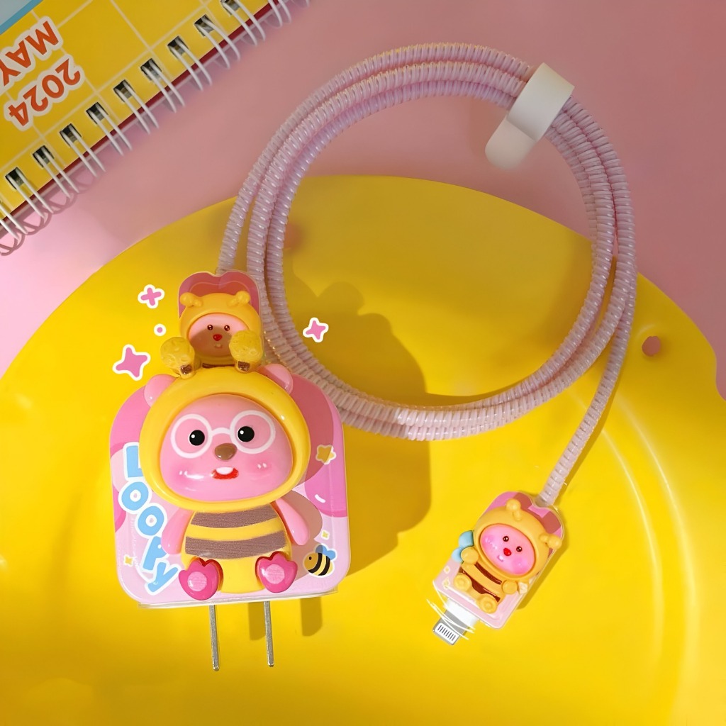 Iphone 18/20W Cover Set Pelindung Charger 4 in 1 PITA 3D KIYOWO Aesthetic - Set Paket Cover Pelindung Kepala & Kabel Cha