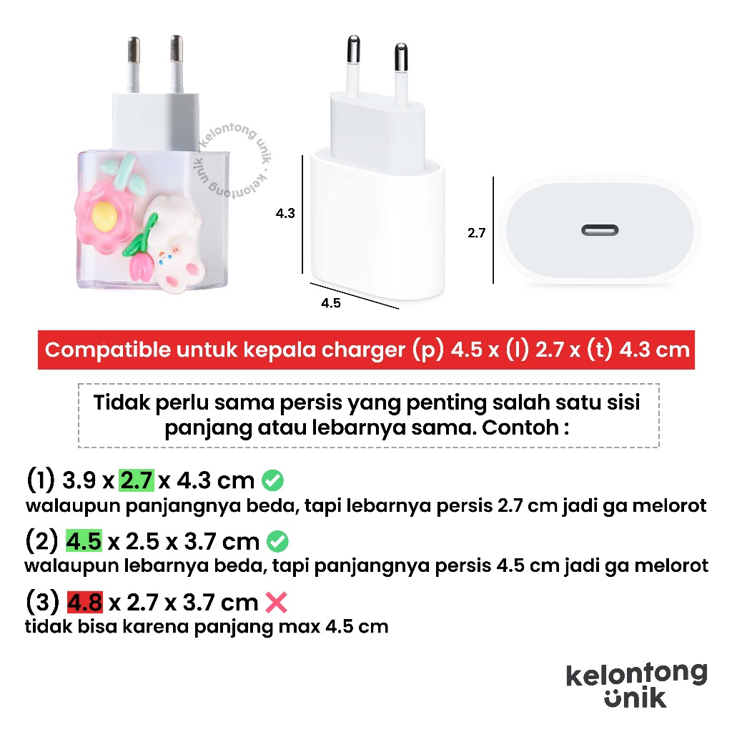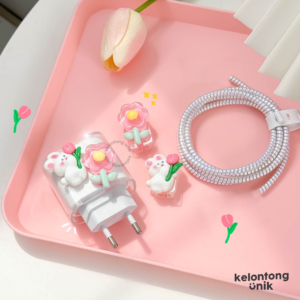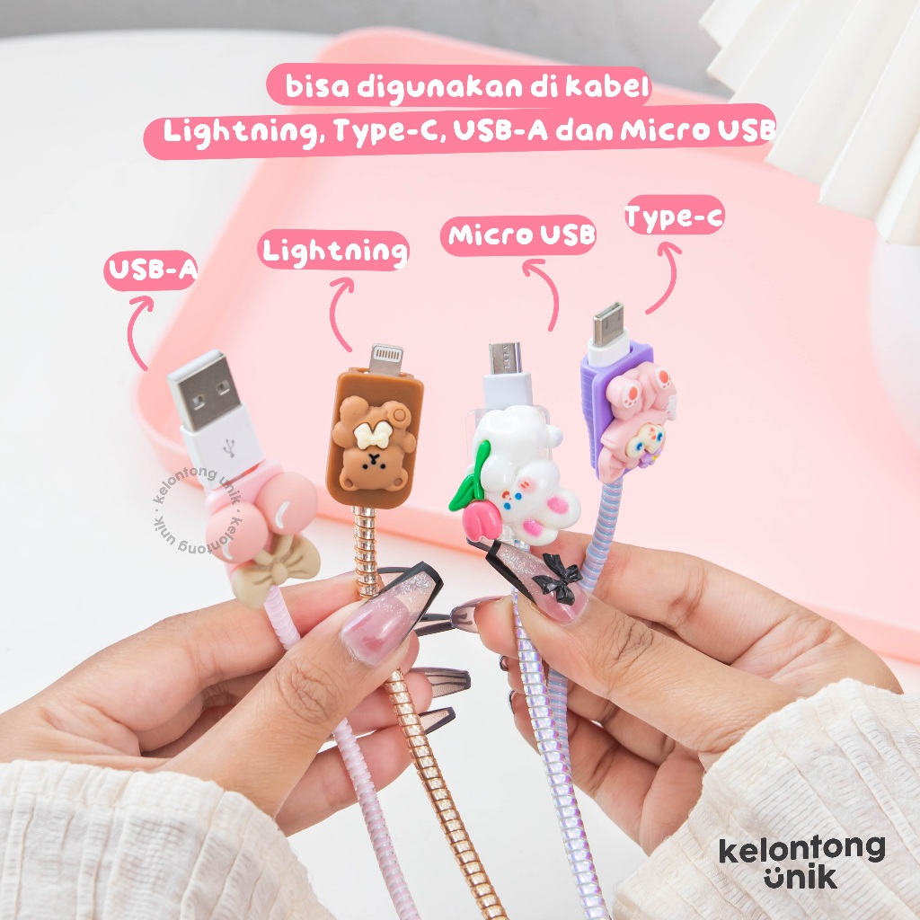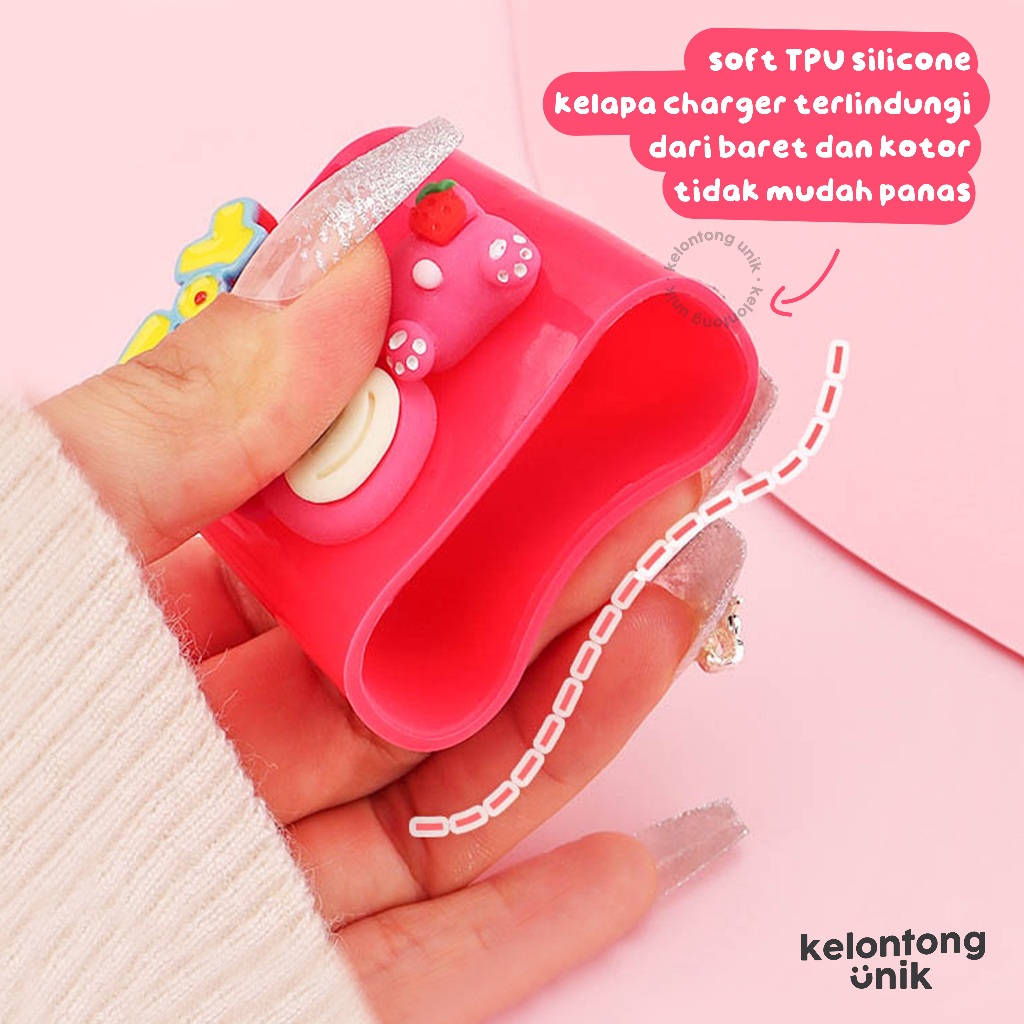 KELONTONG UNIK | CUTE 3D - Set Paket Cover Pelindung Kepala & Kabel Charger Spiral / Cable Set Protector - Compatible f