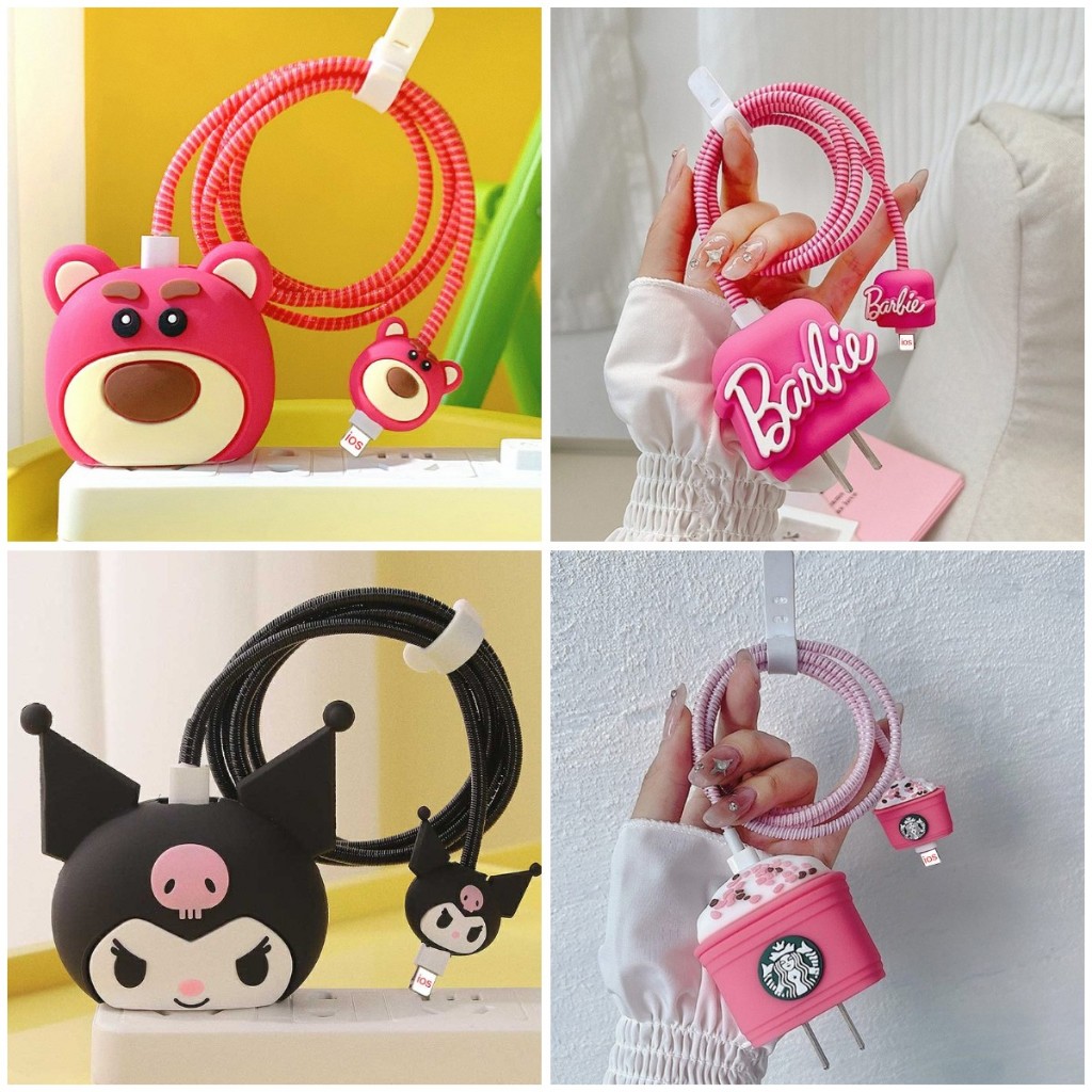4 IN 1 / 1 Set Case Cover Pelindung Kepala Charger iPhone 18/20 W dan Pelindung Kabel Charger iPhone-FE