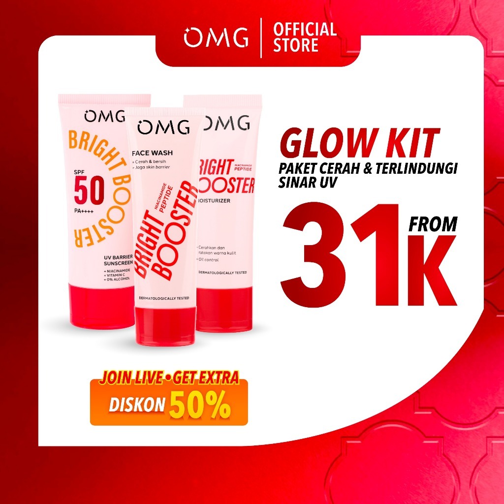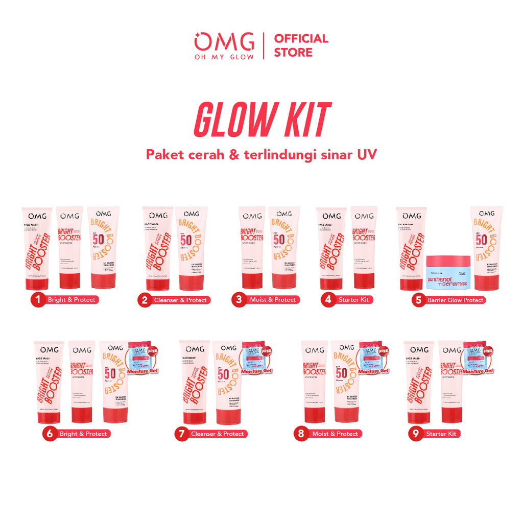 [BEST SELLER BUNDLE] OMG Bright Booster Glow Kit - Paket Tone Up (Facewash, Moisturizer, Sunscreen) - Kulit Tampak Glow