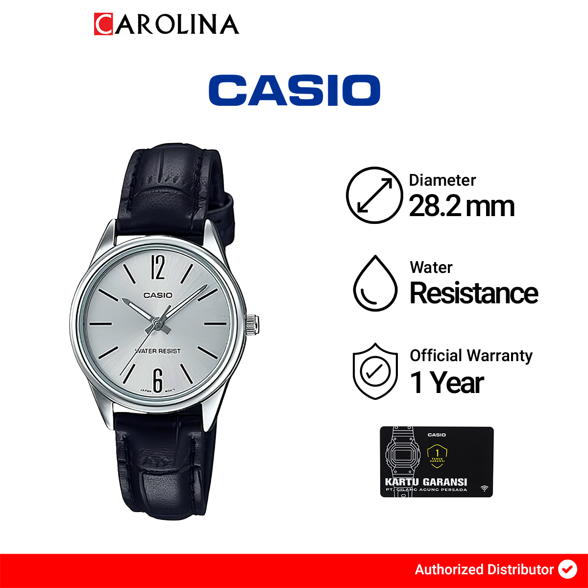 Jam Tangan Wanita Casio General LTP-V005L-7B Silver Dial Black Leather Band