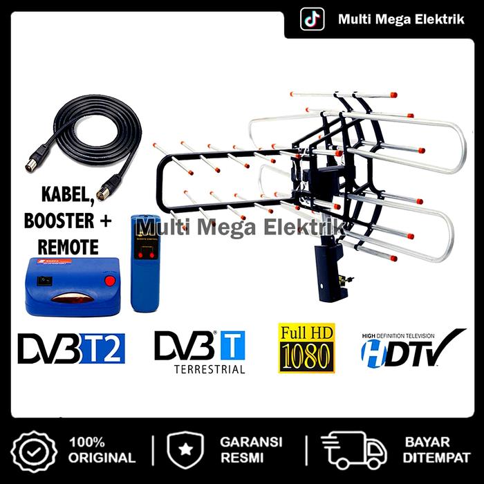 ANTENA TV DIGITAL / ANTENA SET TOP BOX OUTDOR LUAR RUANGAN DENGAN BOOSTER + REMOTE + KABEL 10 METER