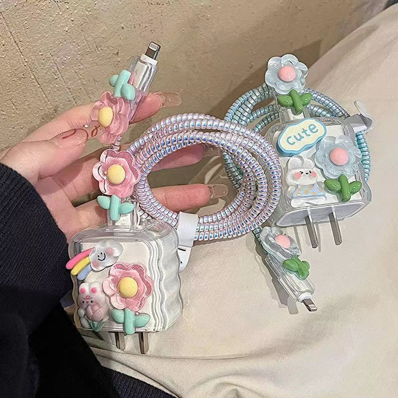 Pelindung Charger IphoneMotif Kristal Pelindungcover kabel & Kepala Charger Iphone 18w&20w pelindung kabel data Iphone