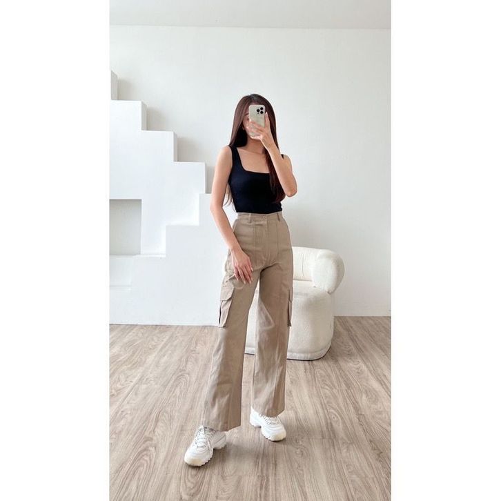 CELANA CARGO WANITA RORA PANTS KARGO CEWEK BAHAN KATUN TWILL STRETCH HIGHWAIST LOOSE KOREAN JUMBO TERBARU