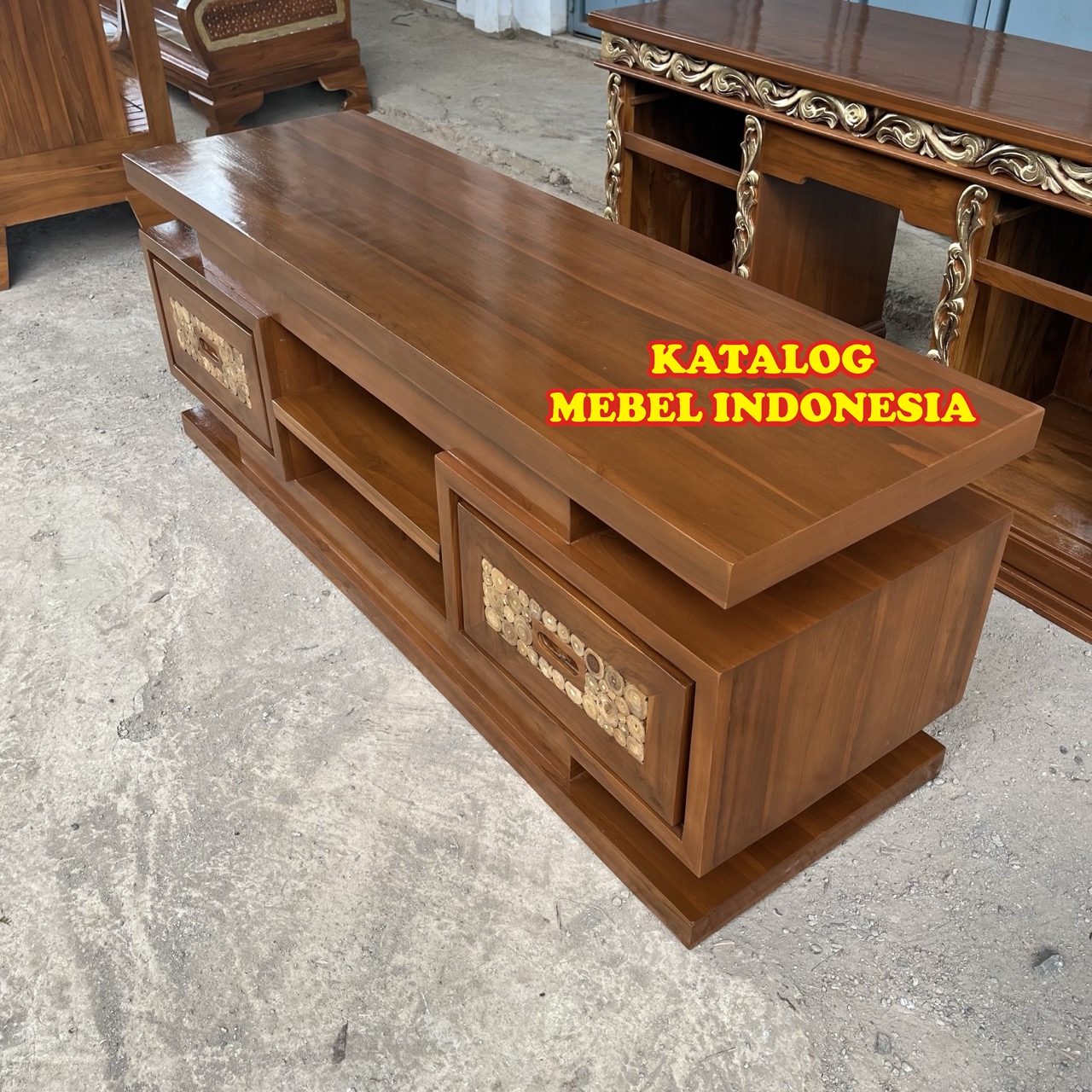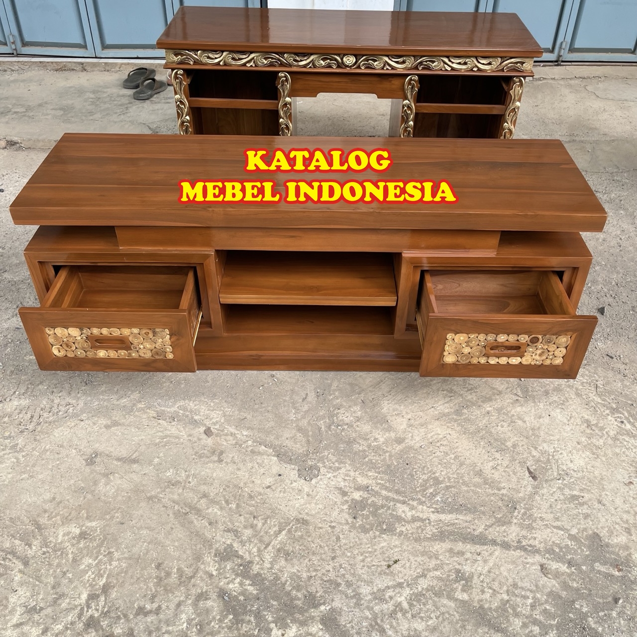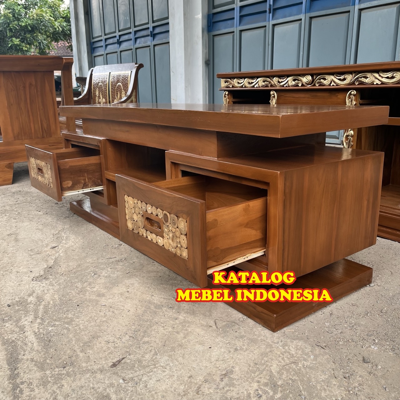 Meja TV Bufet Koin Minimalis Varian Kacamata Kayu Jati 150x45x55 Cm