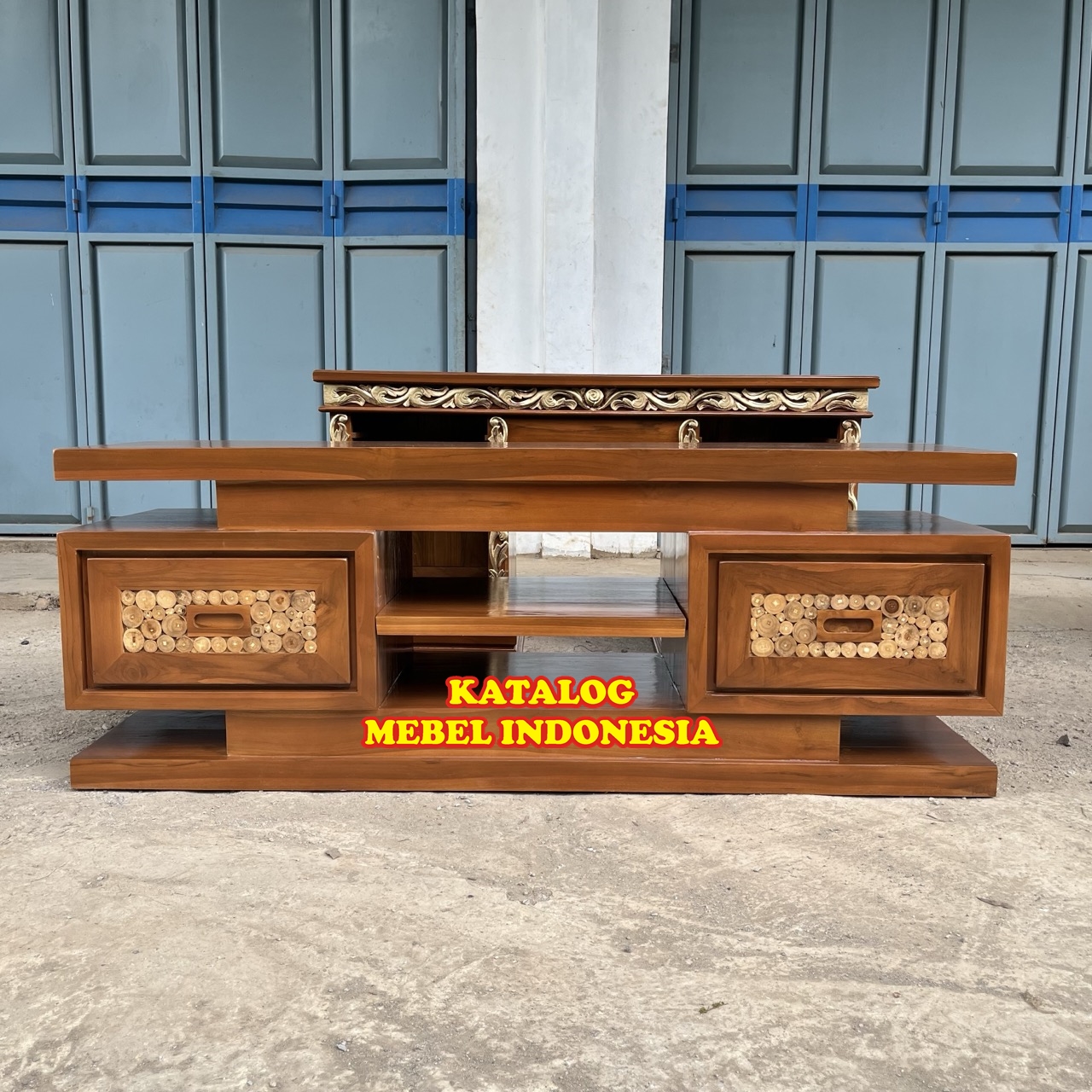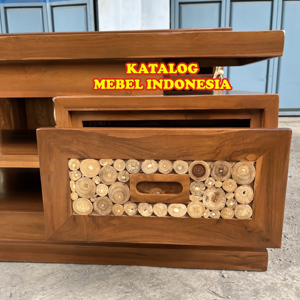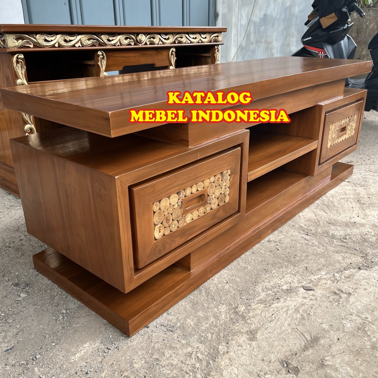 Meja TV Bufet Koin Minimalis Varian Kacamata Kayu Jati 150x45x55 Cm