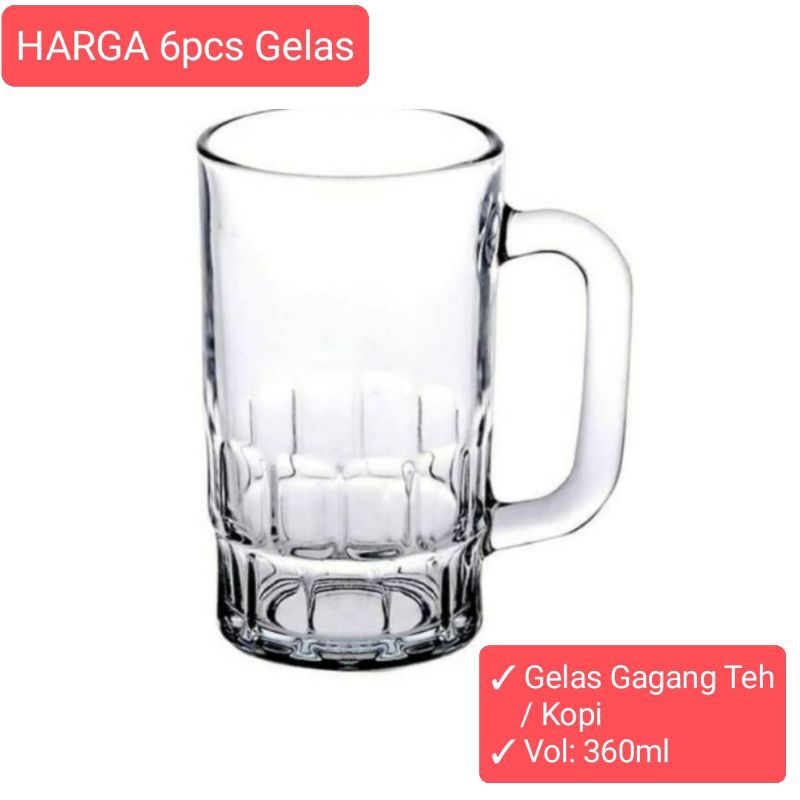 [6pcs] GELAS GAGANG KOPI TEH 360ml/ Gelas Es Kelapa Cendol/ Gelas Es Teh/ Gelas Jadul B20