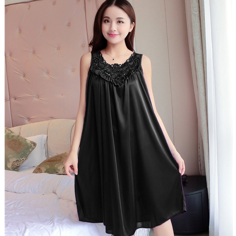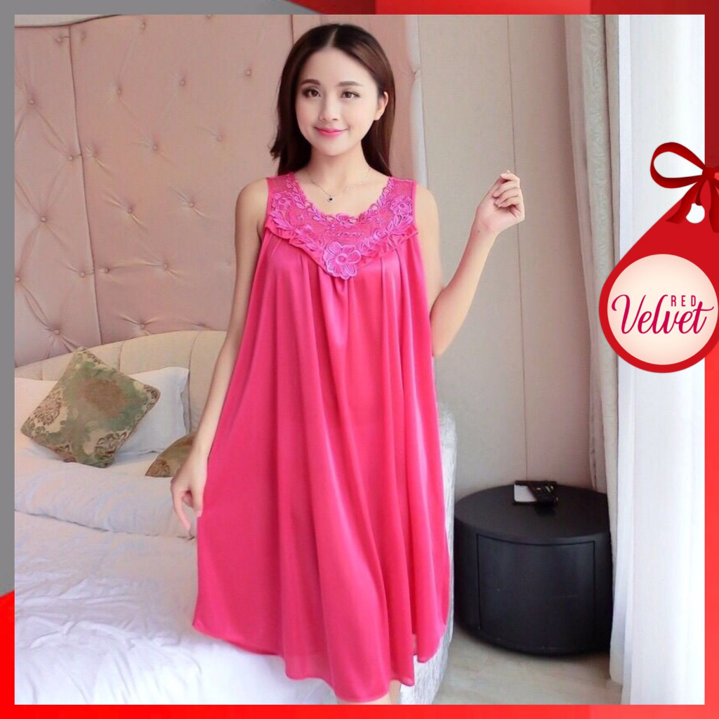 RV® Daster Lingerie Baju Tidur Wanita Satin Brukat Dewasa Piyama Bahan Satin Bordir Happy Import 1041