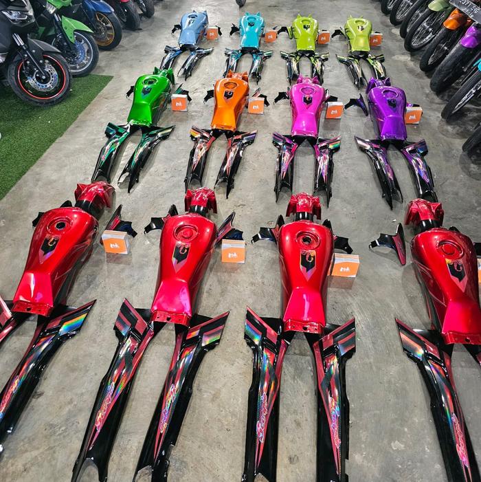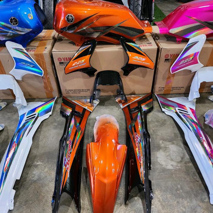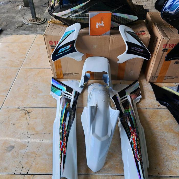 TANGKI STEKO YAMAHA SCORPIO FULLSET BARU SPAREPART MOTOR - PINK PUTIH HOLOGRAM