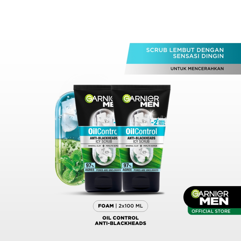 (PAKET HEMAT ISI 2) Garnier Men Oil Control Anti Blkheads Brightening Icy Scrub Fial Cleanser Skin Care - 100ml
