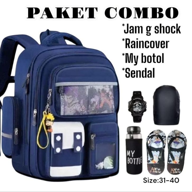 PAKET COMBO Tas Ransel Anak SekolahPAKET COMBO Tas Ransel Anak Sekol Kartun Anime Ransel anak Sekolah Laki laki Termurah