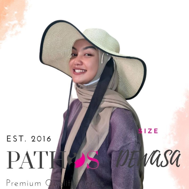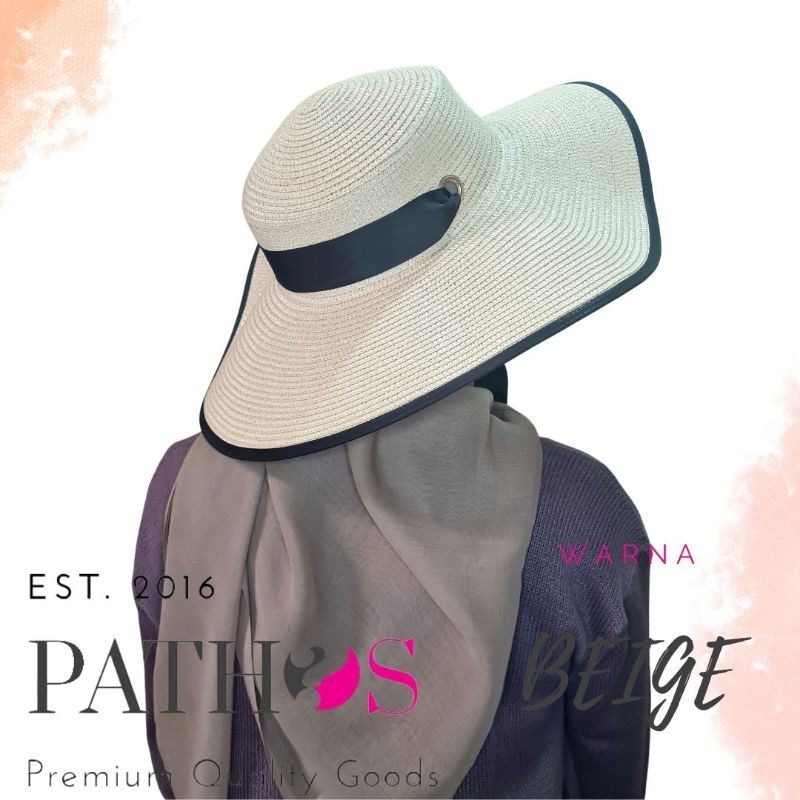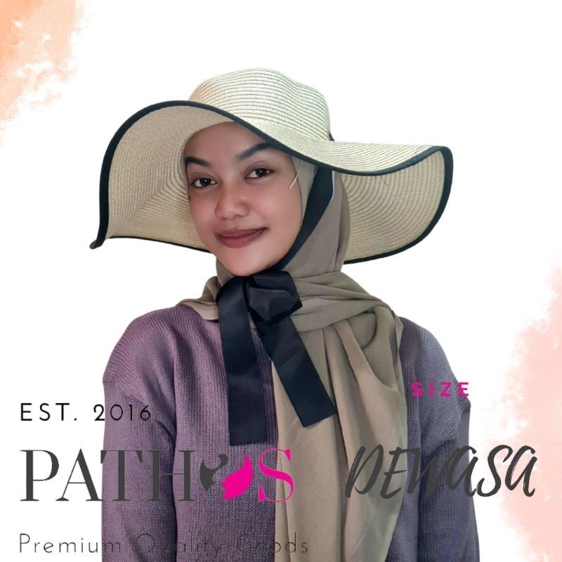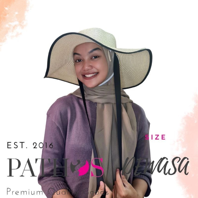 Topi Pantai Wanita Tali Leher Hitam Prewedding Bahan Papper