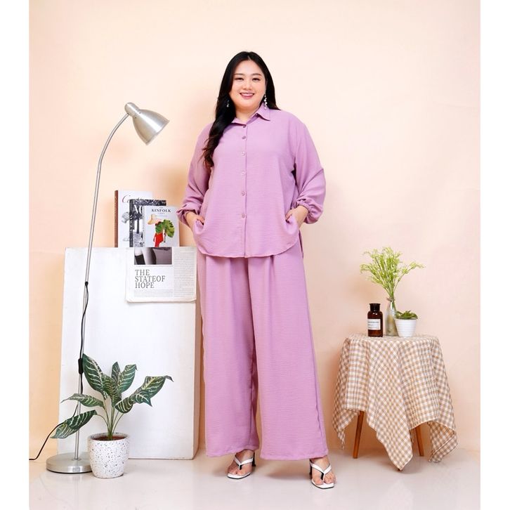 ONE SET KEKINIAN WANITA JUMBO/SETELAN CRINKLE JUMBO LD 136CM/STELAN WANITA JUMBO