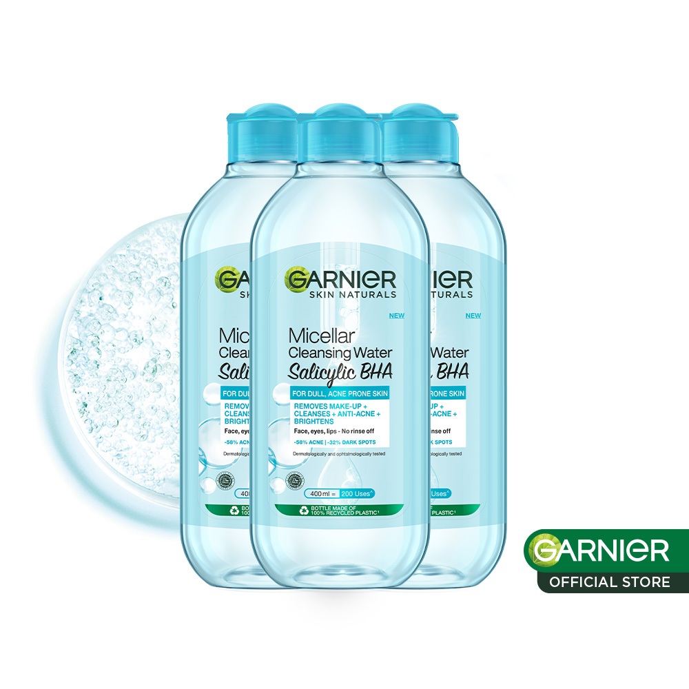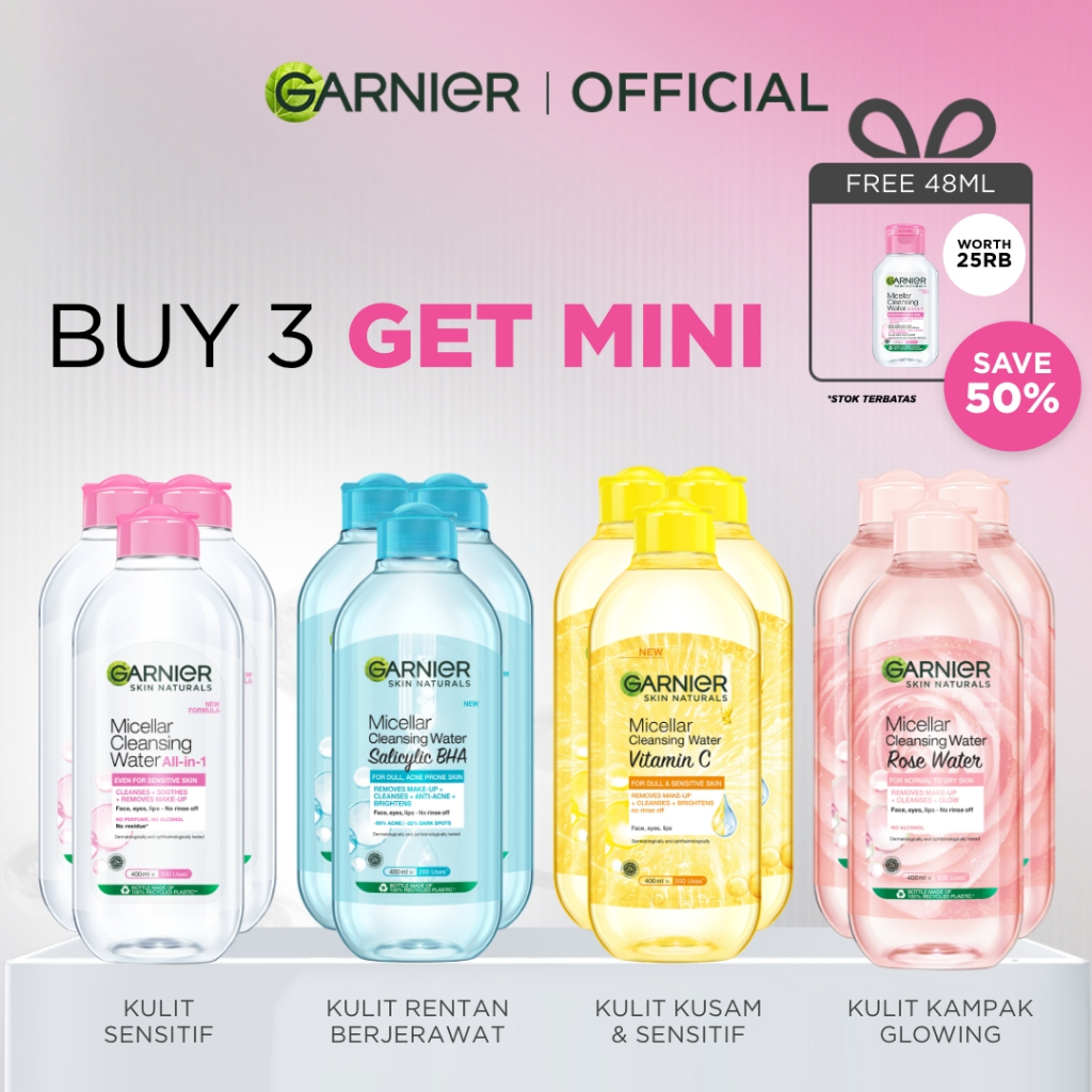 GARNIER Micellar Water 400ml 3pcs Pink Blue Oil Vitamin C Rose Skincare Cleansing - Pembersih Wajah & Make up PAKET HEMA