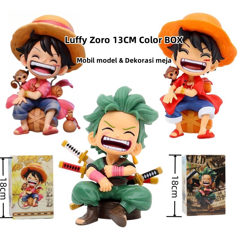 One Piece tion Figure Zoro Roronoa Resin Lufyy Koleksi Pajangan Anime Postur duduk One Piece versi Q seri tertawa Luffy