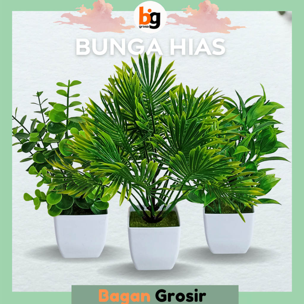 BG Bunga Hias Palsu Dengan Pot Plastik Import Artificial Dekorasi Ruang Tamu Bonsai PBP38
