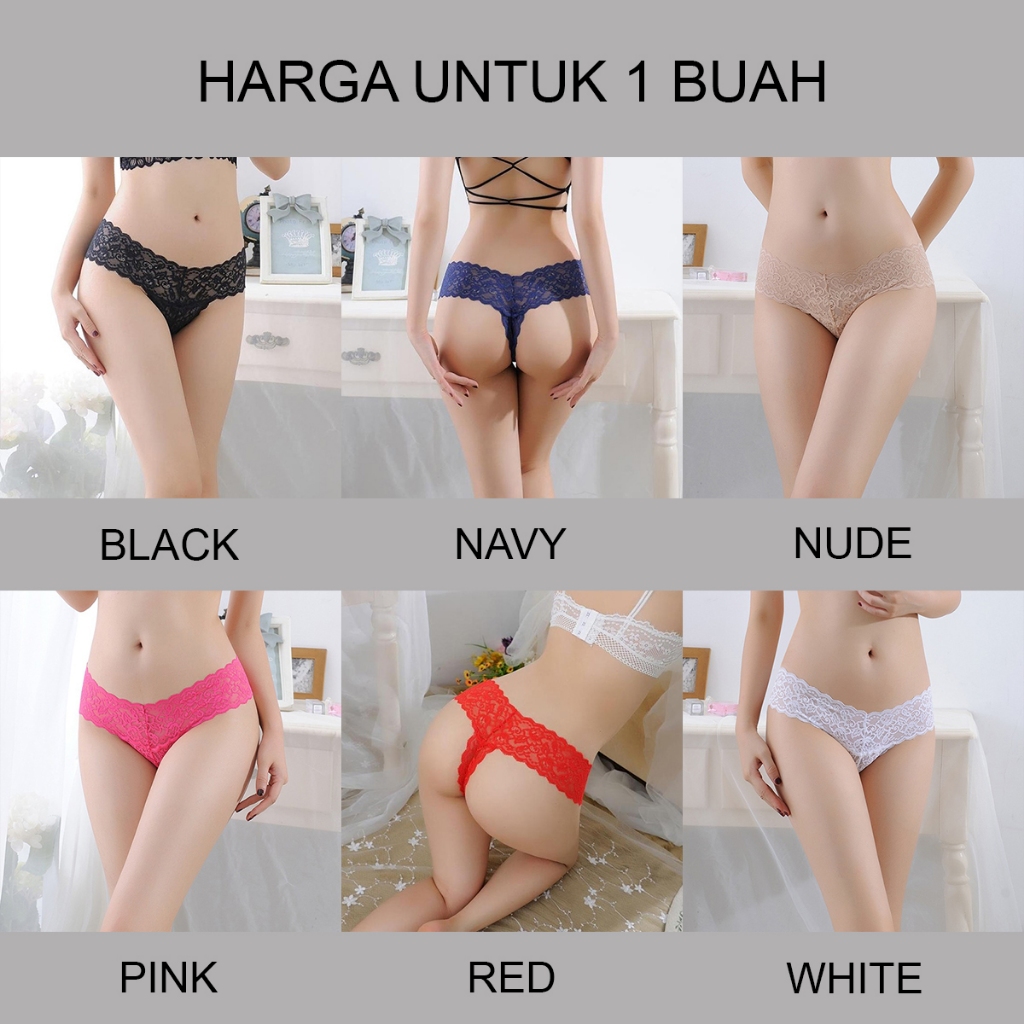 Lenceria - Celana Dalam Wanita CD Kolor G-String Full Renda Lingerie Thong Hot