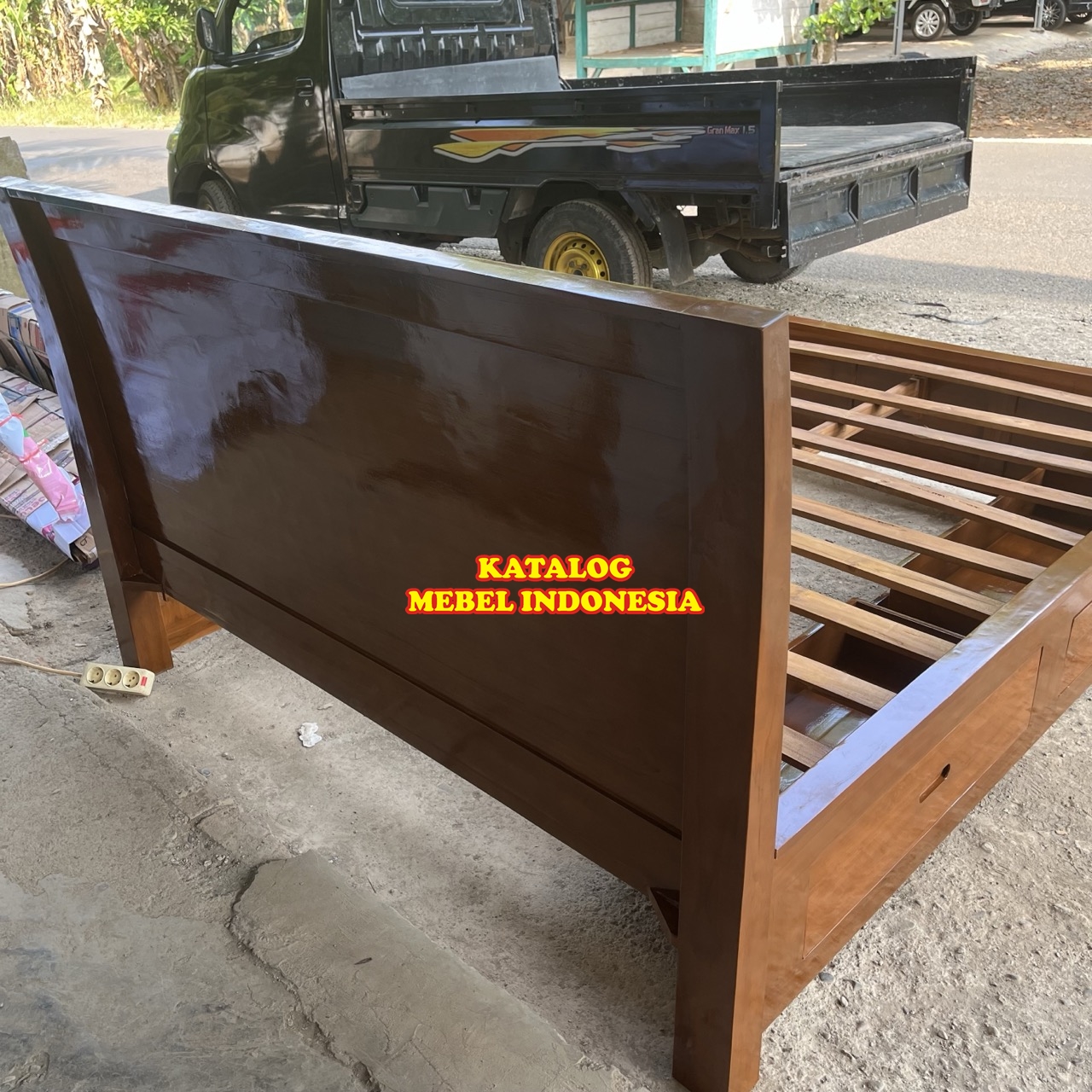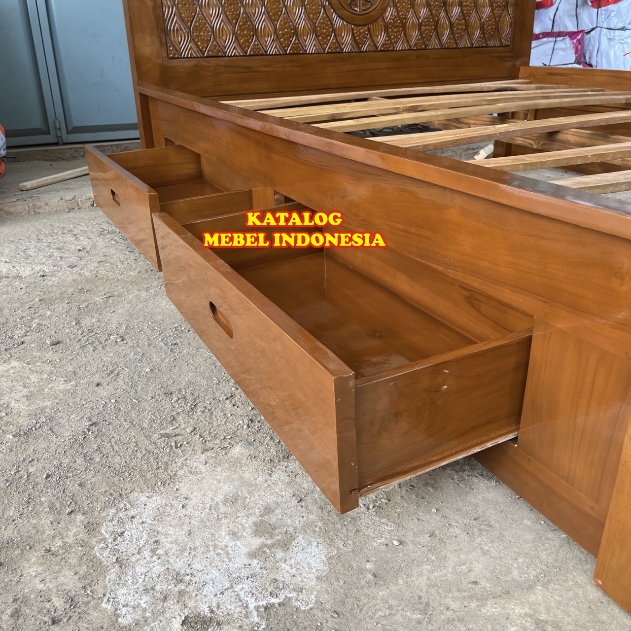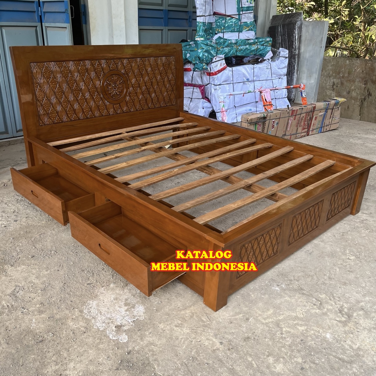 Tempat Tidur Dewasa Kayu Jati Dipan Minimalis 2 Laci