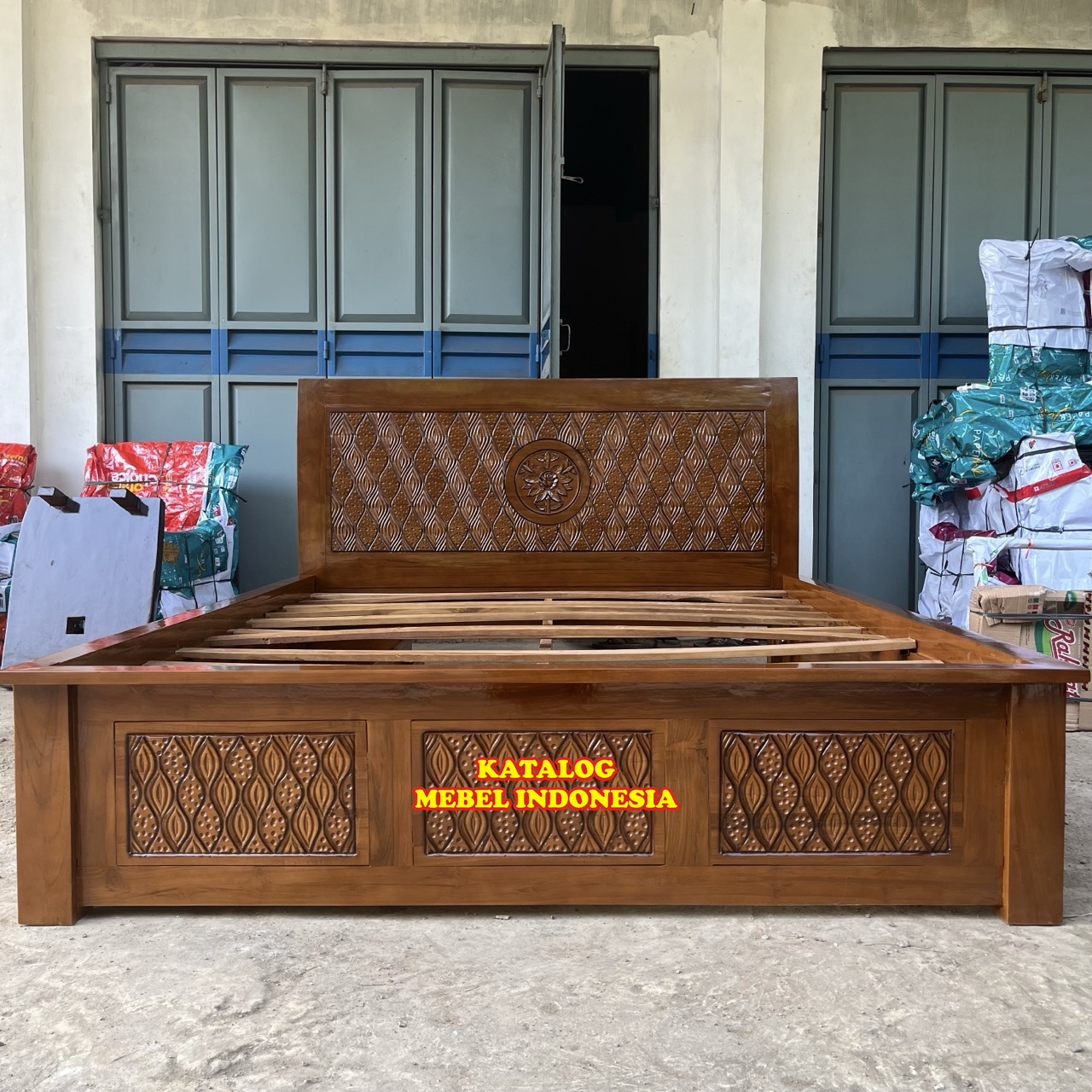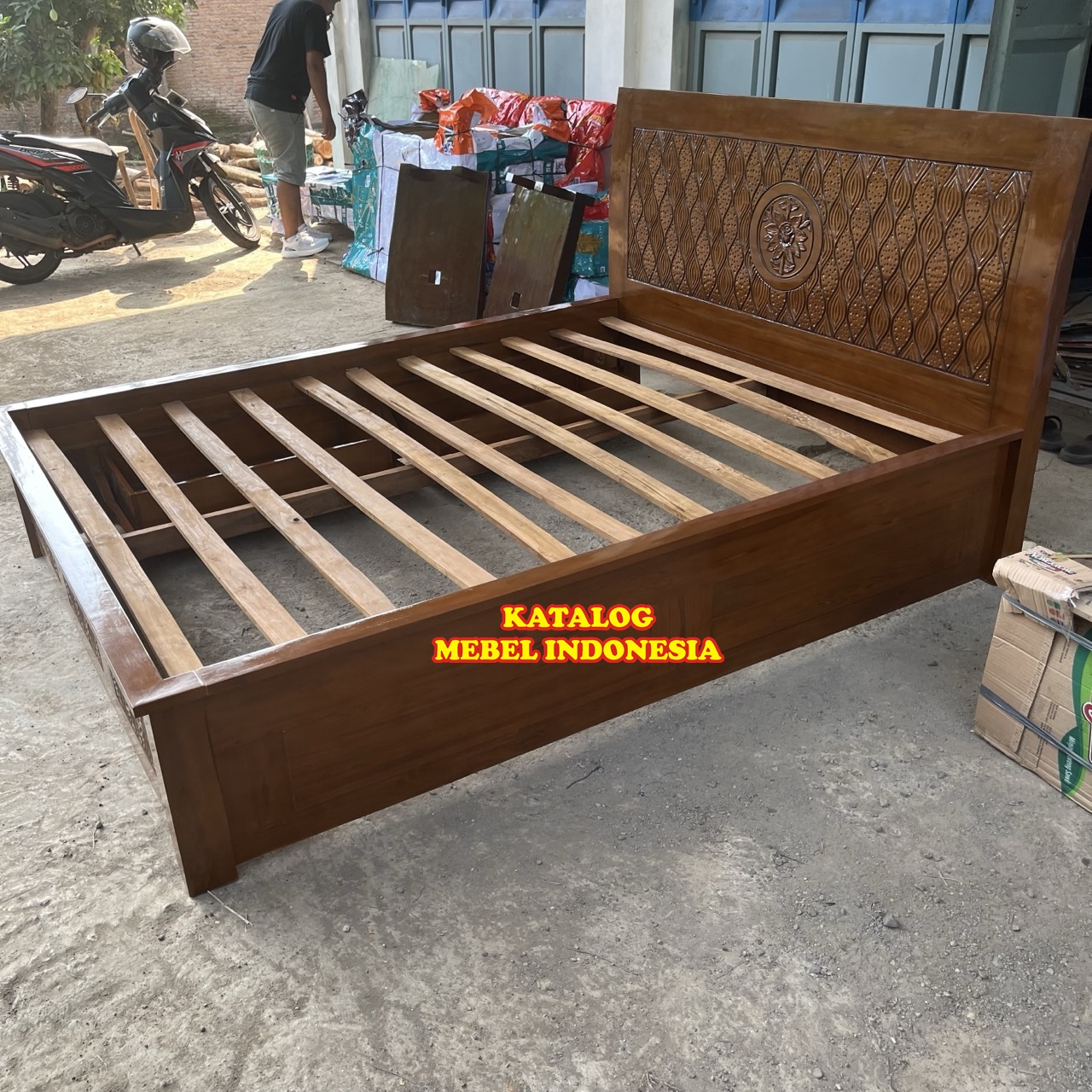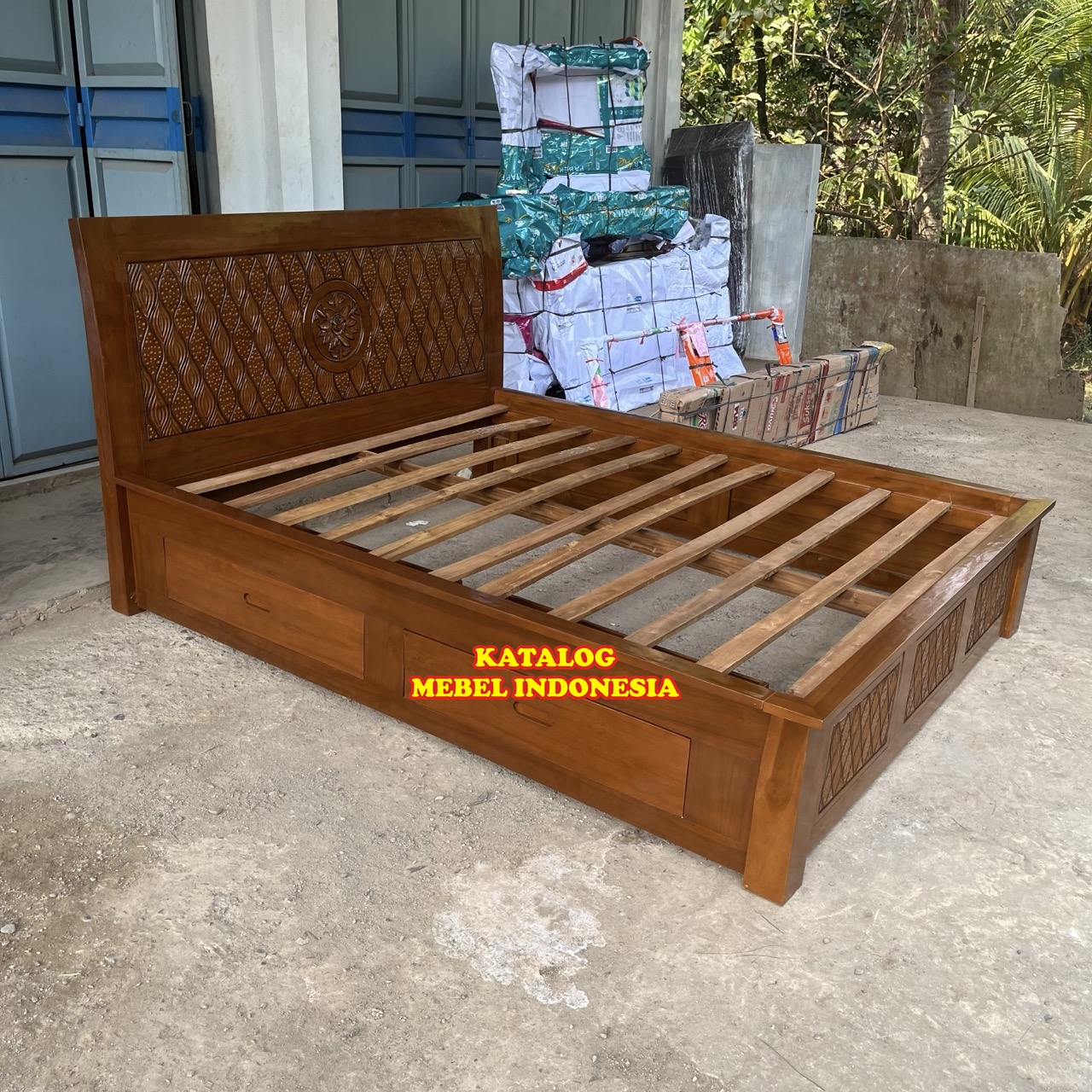 Tempat Tidur Dewasa Kayu Jati Dipan Minimalis 2 Laci